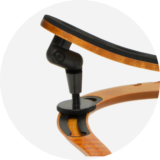 Der Abstand zwischen den Hakenfüßen kann entsprechend dem verwendeten Kinnhalter verändert werden und die Positionen der Kugelfüße können den unterschiedlichen Modellen von 4⁄4-Geigen angepasst werden.