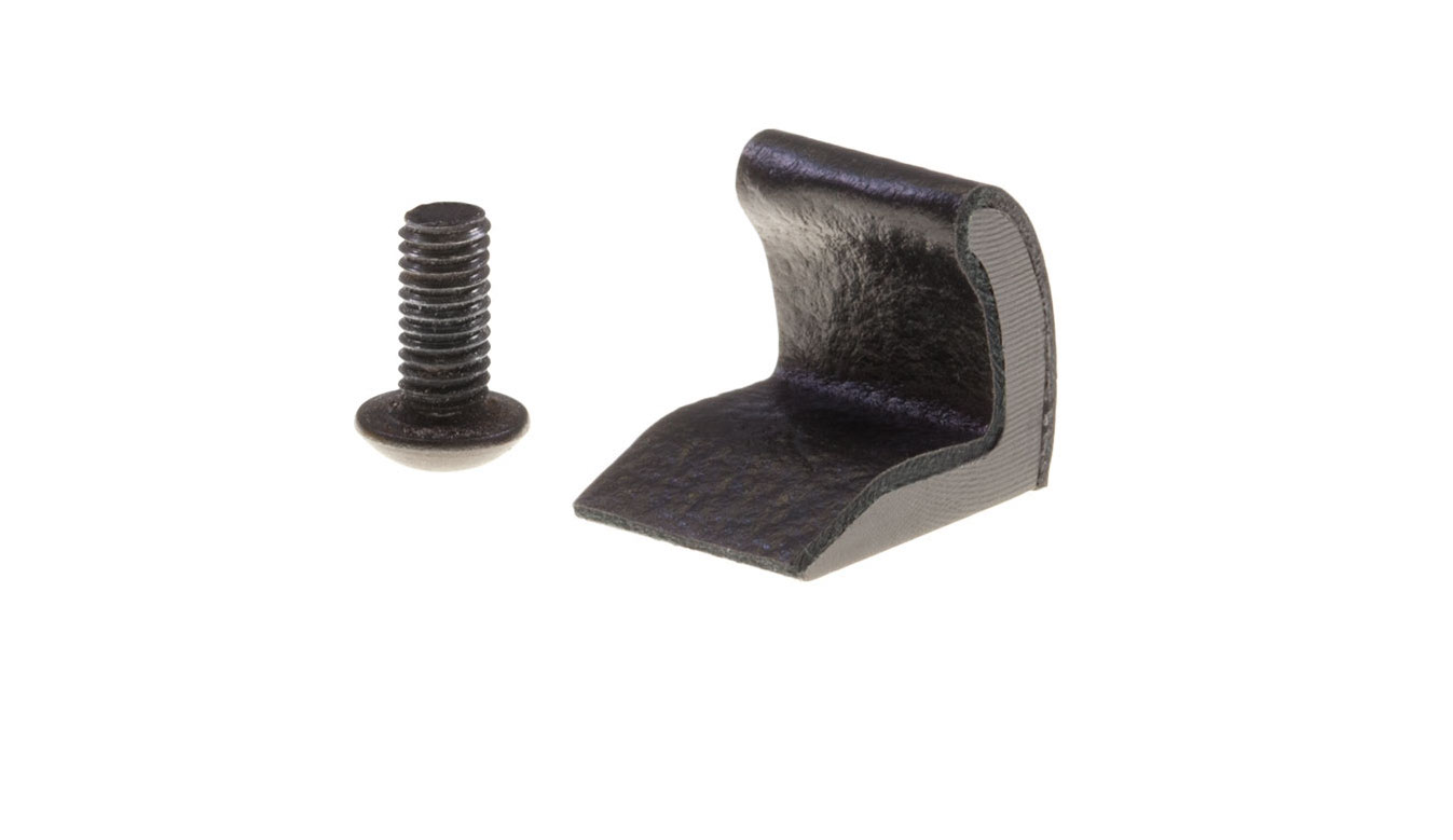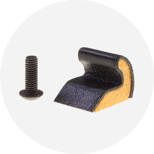 Wenn ein Gummipad abgenutzt ist, kann dieses durch anheben an der Spitze des Pads abgezogen werden. Ziehen sie die Folie von einem der mitgelieferten Ersatzpads ab und richten Sie das runde Loch genau um die Torx-Flanschschraube aus. Dann richten Sie die Augen des Gummipads mit denen im Holz aus.