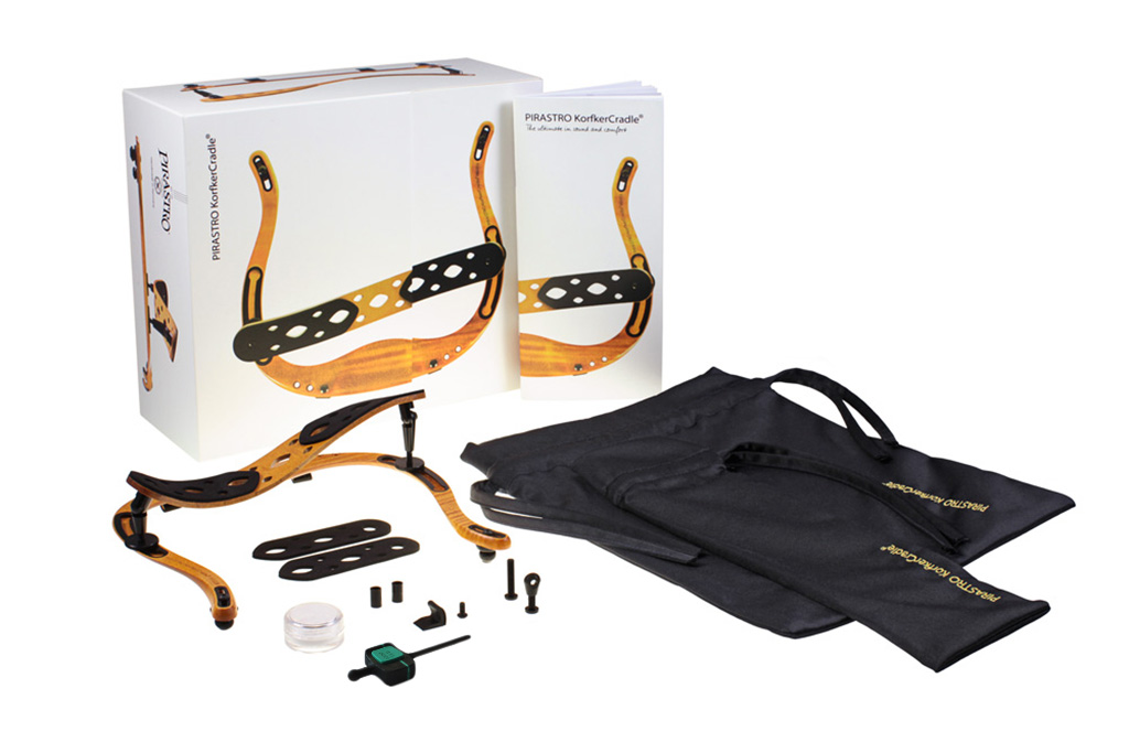 Die Cradle wurde so konzipiert, dass der Kontakt mit dem Instrument minimiert und die Belastung, die normalerweise durch die Befestigung der Schulterstütze an der Geige entsteht, beseitigt wird. Die Cradle sitzt mit zwei Hakenfüßen und zwei Kugelfüßen an der Geige.
